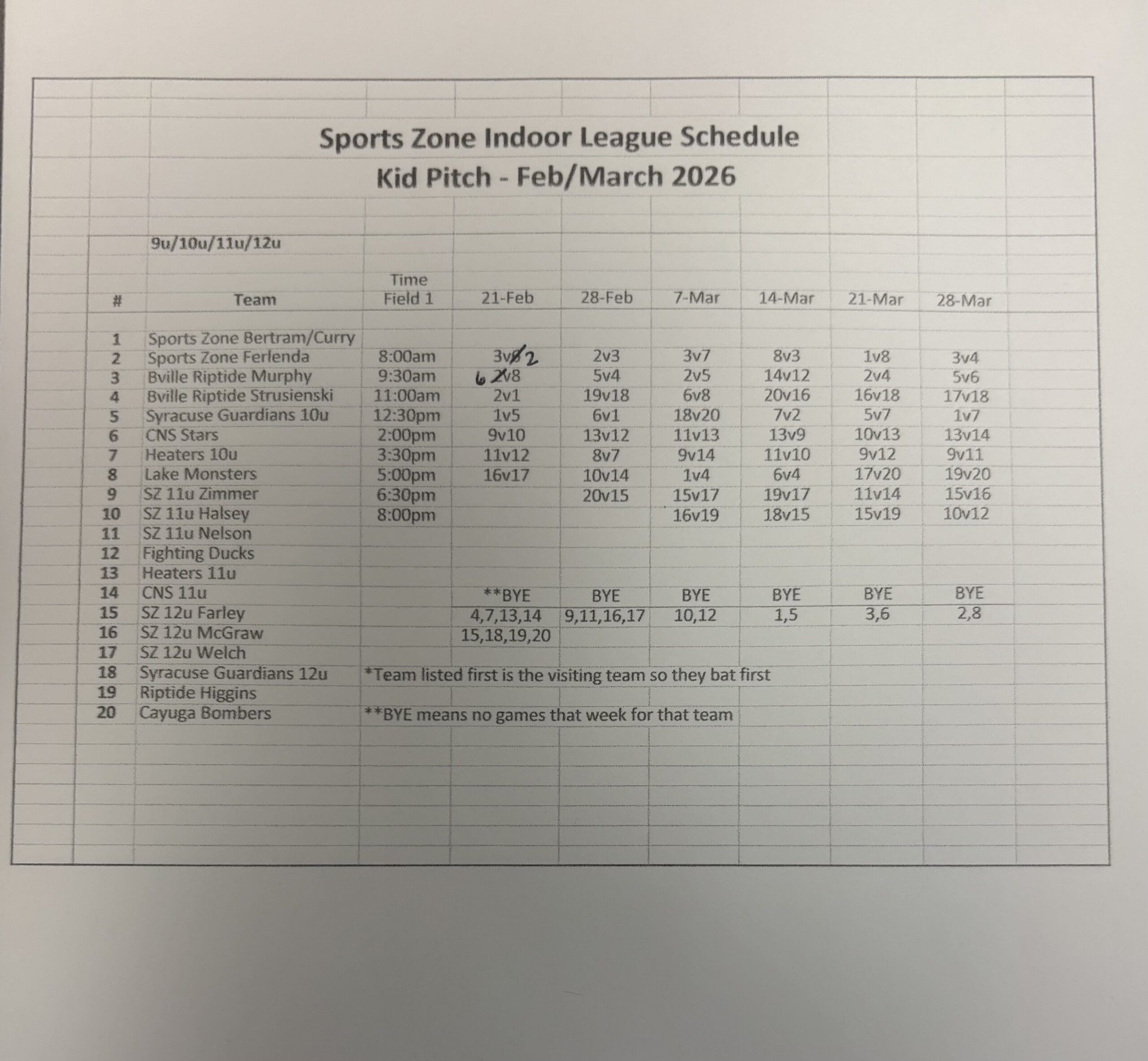 Teams will need a minimum of 10 players with a maximum of 12. Each team in the league will get one hour of cage time prior to each game to warm up. Coaches will need to collect the team fee and pay before the league begins.